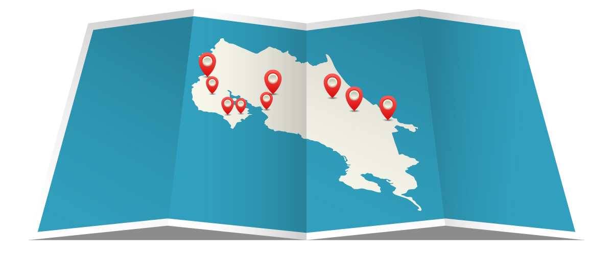 📍 Playas del Coco | 📍 Santa Cruz | 📍 Paquera | 📍 Mal País | 📍 Cóbano | 📍 Puntarenas | 📍 San Ramón | 📍 Ciudad Quesada | 📍 Guápiles | 📍 Siquirres | 📍 Limón | 📍 Puerto Viejo | 📍 Bri-Bri